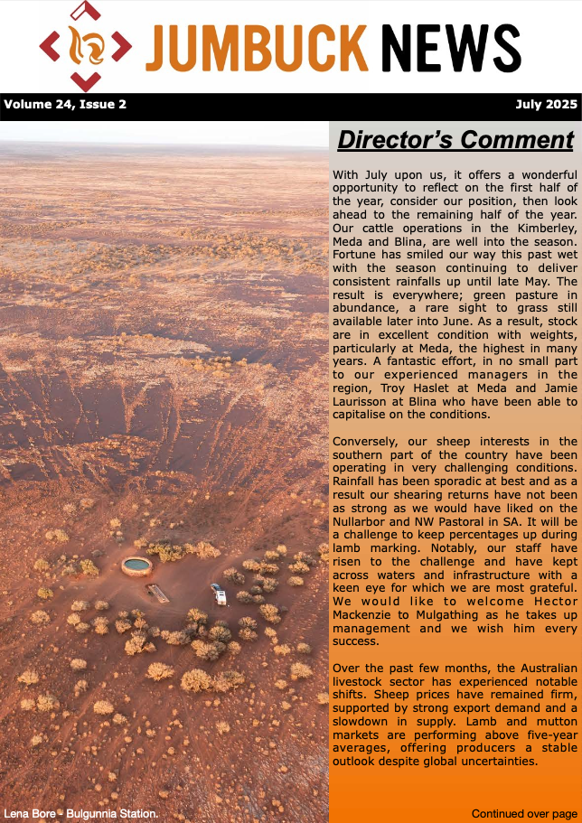 Jumbuck produces a company wide newsletter 3 times per year with contributions provided by each of our managers on their respective stations. Below are our most recent issues; feel free to have a look through.
